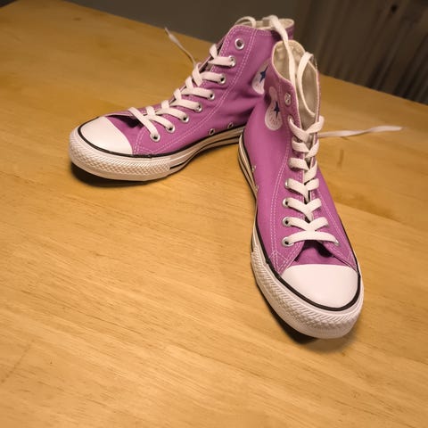 Converse Sneakers i størrelse 41,5 lavet af lyserødt canvas materiale. Skoene har snørebånd og gummisål, velegnet til daglig brug.