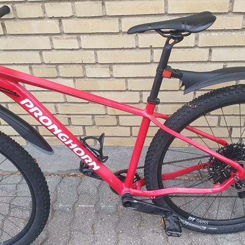 Lækker alu fuldsuspenstion mountainbike fra Pronghorn. Se alle specifikationer på billederne. Brugsspor, men meget velholdt og trænger bare til en klud og et lille service. Medfølger crankbrothers pedaler og er par ekstra slanger 👌
