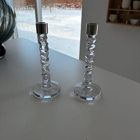 Håndlavede unika lysestager pris 650 kr smukkeste orrefors krystal og lyngby krystal, lysestagen kan bruges til fyrfadslys og bloklys og evt også som skål.