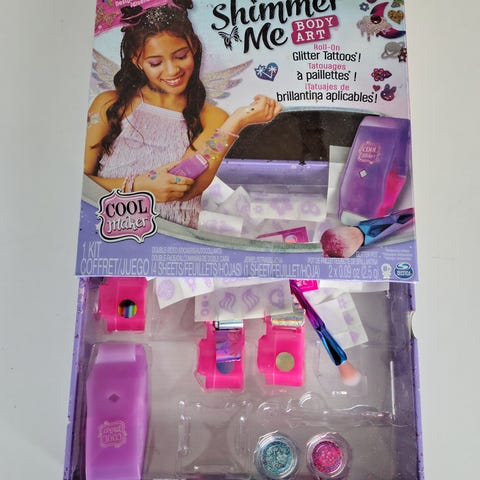 SOLGT Helt nyt Top Model glitter tatoo sæt. Aldrig åbnet. Med selvklæbende tatoveringer, 3 glitterfarver og 1 børste.