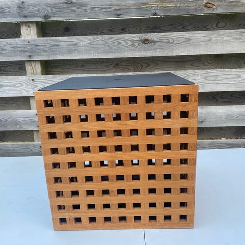 Trip trap trækasse med hjul. Jeg tror det er teak. Den måler 0 x 0 cm. Jeg sender ikke