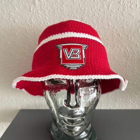Hæklede fodbold bøllehatte efter egen opskrift og design. Fast pris kr. 300.