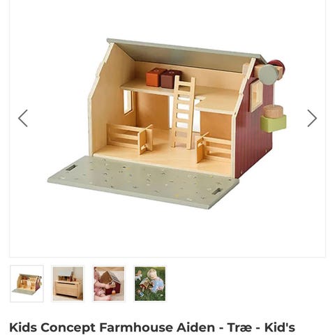 Lille træ-bondegård med træbondegårddyr. Alle dyrene og traktorerne kan være nede i huset, hvilket gør det nemt at rydde op :)