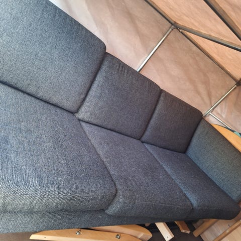 Tre personers hvid sofa med aftageligt betræk til salg. Brugsspor kan formentlig vaskes væk.