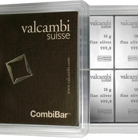 Produktnavn: Køb Danmarks billigste 100 x 1 gram Combibar sølv Valcambi