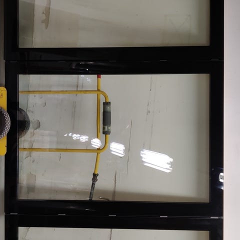 Fast vindue med glas-panel udvendigt.