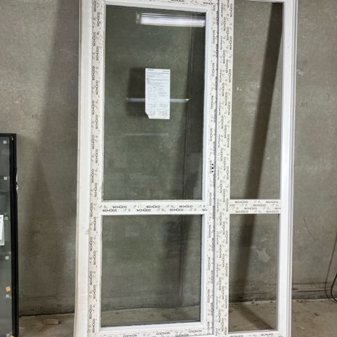 Vinduesdør i træ/alu med 3-lags energirude, friskluftsventil og 3-punktslås. Har fået noget klistret væske på sig. Outlet produkt som kan have mindre ridser og buler.