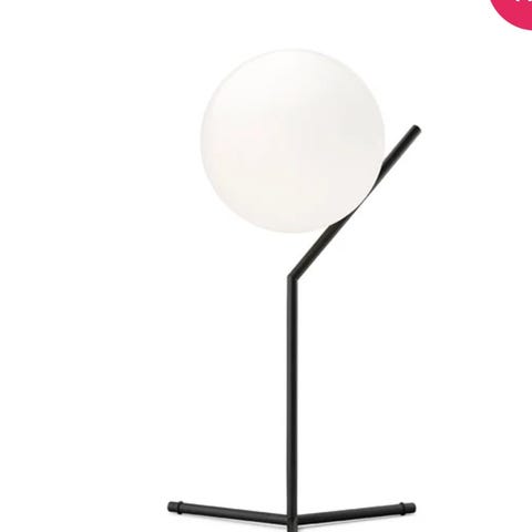 Flos bordlampe med sort lampeskærm og hvid marmorfod. Designet til brug som dekorativ og funktionel belysning i forskellige rum. Materialer: marmor og metal. Farver: sort og hvid.