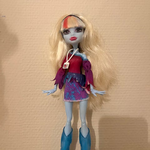 Sæt med to Monster High dukker: Heath Burns og Abbey Bominable. Inkluderer tilbehør som vist på billederne.