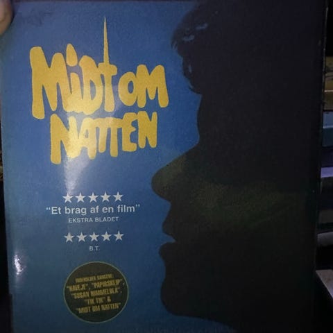 Midt om Natten DVD film med dansk tekst. Indeholder filmens forside og bagside med beskrivelser og billeder fra filmen.