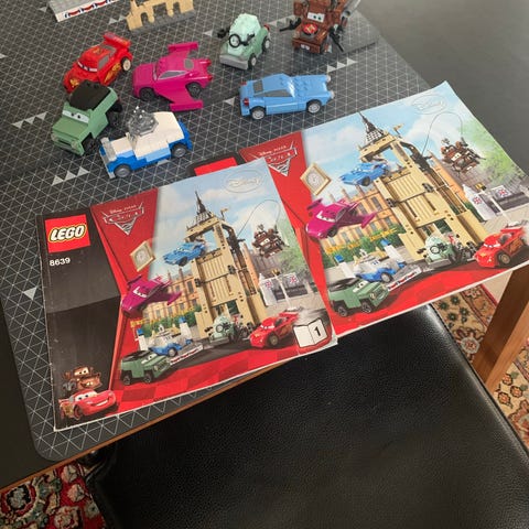 Cars byggesæt med flere små modeller og instruktioner. Indeholder forskellige farvede klodser til samling af bilmodeller fra Cars-temaet. Egnet til børn og samlere.