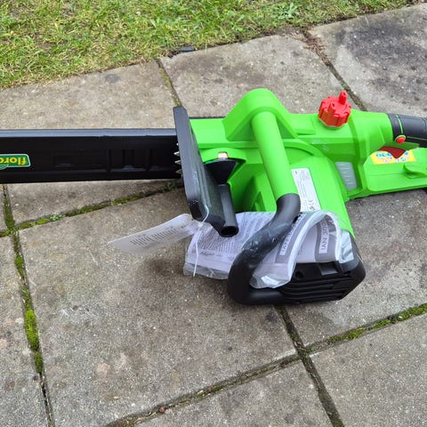 Kædesaven er elektrisk drevet og er egnet til beskæring og træfældning.