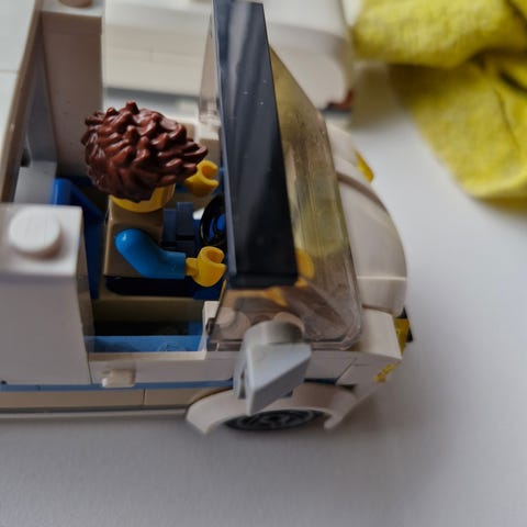 LEGO City 7639 Lego 7639. Komplet dog mangler en rød kop (ud af 2). Campingvogn legetøj med små byggeklodser i forskellige farver, herunder grøn og hvid. Sættet indeholder dele til at bygge en campingvogn samt minifigurer. Passer til børn og samlere af LEGO City temaet.