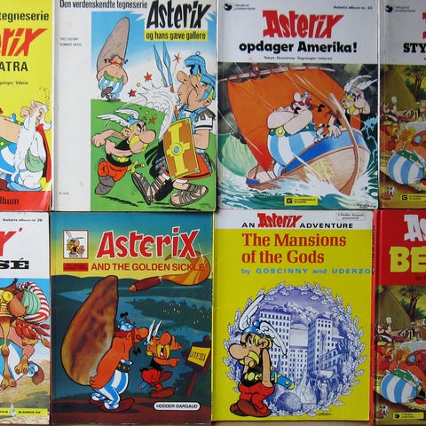 Ca 110 stk gamle tegneserier i blandet stand, med undgået biblioteksbøger imellem, fra 1970,1980,1990' gerne, en del i 1 udgave. En del lucky Luke, og Asterix , men også, Buddy Longway, Red Kelly, Bernard Prince, Blåfrakkerne, Clifton, Kasmerrotterne, Leonardo, Simon, Wininger, Eva, Spurvehøgen, Yann, Gammelpot, Ridder Goodwill Eventyr, Laiyna, Menneskets Rettigheder, Ad egne spor, Børnehjemmet m.fl