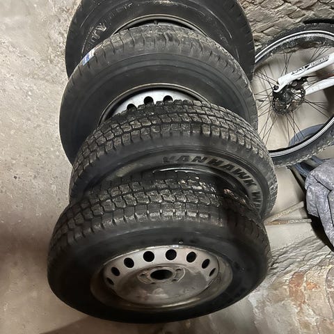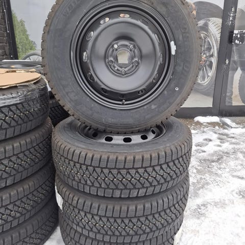 Komplet sæt vinterhjul til, Renault Trafic, Opel Vivaro, Fiat Talento og Nissan NV300. 4 stk Barum varevogns dæk i størrelsen 205/65-16 107T 2 dæk måler 8mm og er fra 2022, og 2 dæk måler 6,5mm og er fra 2017