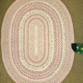 Flot ovalt tæppe i en varm beige farve, der passer perfekt til både stue og spisestue.