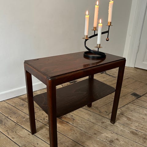Art deco sofabord / sidebord / sengebord med hylde, malet auberginefarvet, mål: 51 x 51 x H: 55 cm