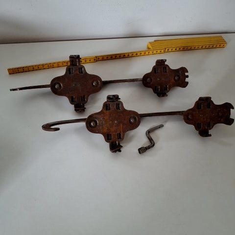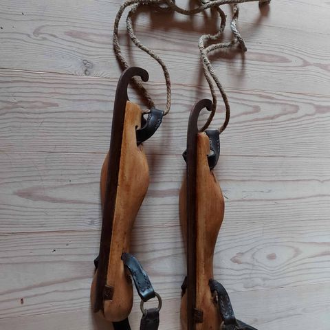 Produktet er et par træslæder. Det har en naturlig træfinish og er udstyret med snore til fastgørelse. Træet har en glat overflade med en let buet form.,Afhentes i:,Røde Kors Holstebro (661),Bemærk at mail, chat og beskeder ikke besvares, og varen skal købes på knappen "Gå til varen"