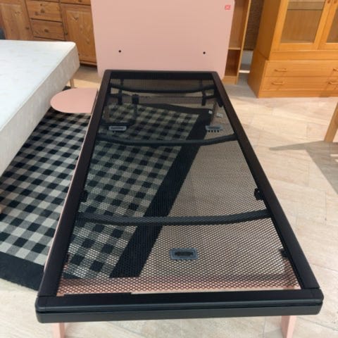 Sengen har en enkel, klassisk stil med skrå faste stykker og runde hovedpæle. Den er lavet af træ. Naturlig træfarve.,Afhentes i:,Røde Kors Kolding (621),Bemærk at mail, chat og beskeder ikke besvares, og varen skal købes på knappen "Gå til varen"