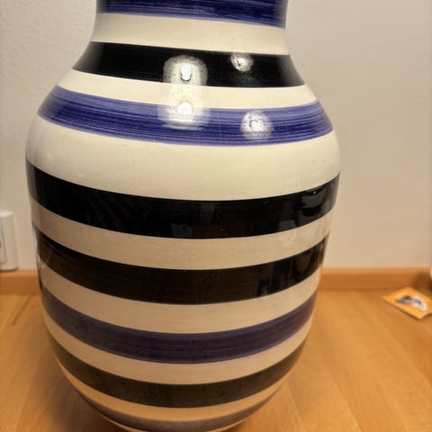 En fin lille vase med grønne striber over hvid, i rigtig fin stand.