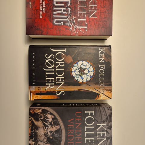 Ken Follett Romaner bestående af titlerne Uendelige Verden, Sneet Inde og Pyramiden. Bøgerne er på dansk og er trykt i paperback format. Indeholder fortællinger inden for fiktion og historisk roman.
