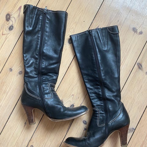 Lang støvle i sort. Brugt men fejler intet. Alm vidde i læg.