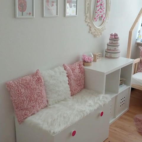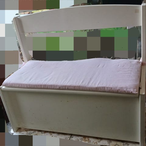 God kistebænk til børnene. Der er slået en lille fli af bagerst på højre side, som er limet på igen og har siddet fast siden. Købt for 400 kr. I pixizoo.