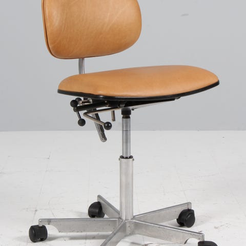 Fin KEVI stol retro. Sort læder. Læder og hele stolen er i top stand. Alt originalt og virker perfekt. . Og kan justeres både ryglæn højden/ afstand samt siddehøjde. ingen kæledyr og røgfri hjem.