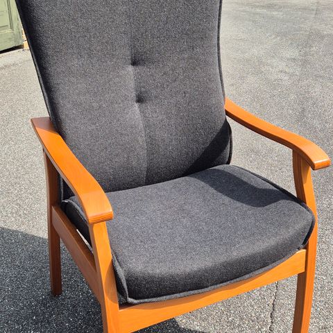 Farstrup Otium Lænestol – Højrykket Hvilestol i Træ og Grå nistret møbelstof