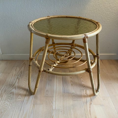 Retro bambus sofabord med bordplade i matteret glas