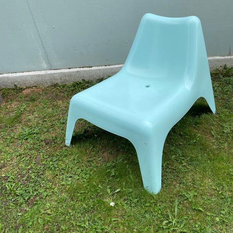 Stol i hvid plast. Stolen har en unik form og er designet til at være både funktionel og æstetisk. Egnet til brug indendørs og udendørs. Materialet er holdbart plast.