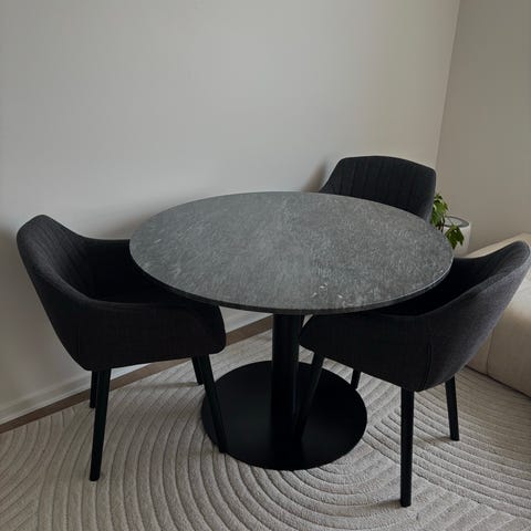 Vi har 4 stole til, de har set bedre dage, så dem får i med i købet.