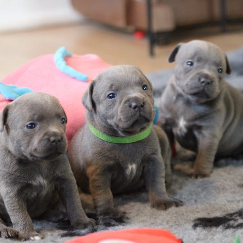 Glade og frække staffordshire bull terrier hvalpe søger deres kommende familier. Klar til at flytte hjemmefra. Glade, frække og aktive, vant til dagligdagens lyde og gøremål og kommer dagligt ud I haven. Fra gode sunde forældre med dejlige sind, mor kan ses ved besøg.