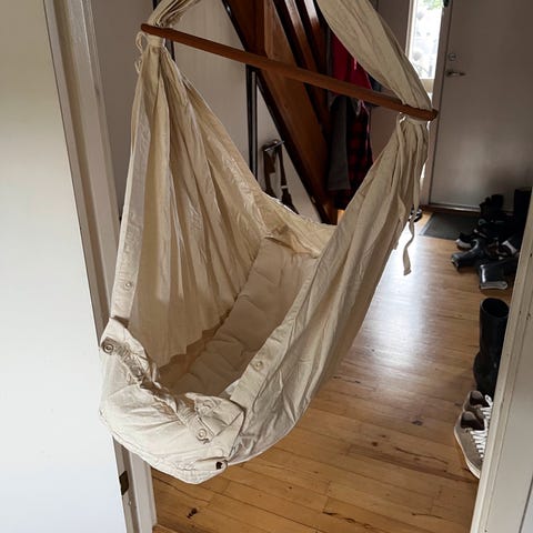 Slyngvuggen er brugt en kort periode til 1 barn og er i rigtig fin stand.