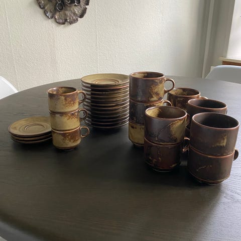 Vintage keramik stel i 35 dele fra Schweiz. Mærket er Suisse Langenthal og serien hedder Savannah Sahara. Det er rigtig smukt og velholdt, vi har desværre ikke plads til det mere .