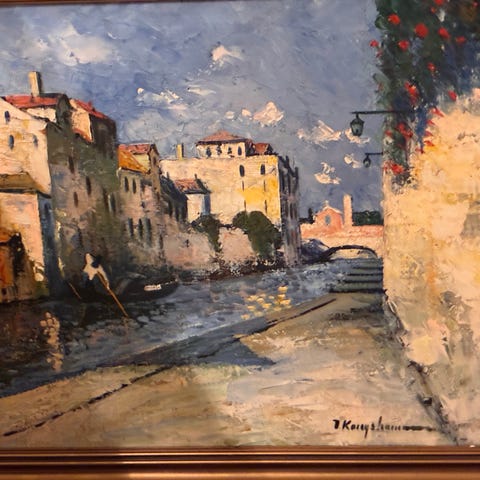Jens Kongshammer maleri ( 1884 - 1974) - motiv havn, Børsen i baggrunden ( København)