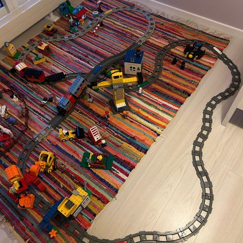 Stor LEGO DUPLO togbane med skinner og tilbehør