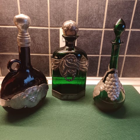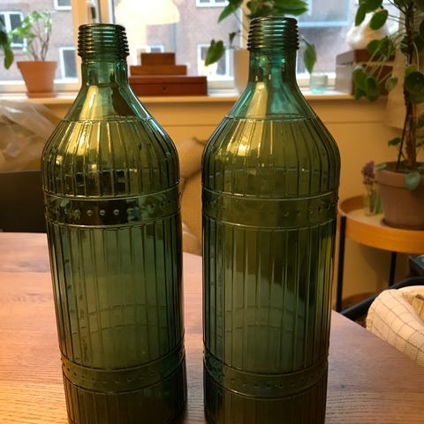Flaskerne er i solidt glas med smuk patina og karakteristiske detaljer i bunden.