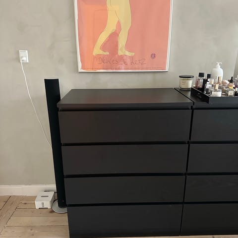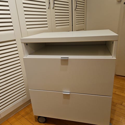 Fin ikea kommode med fire skuffer. Kommoden er på hjul.