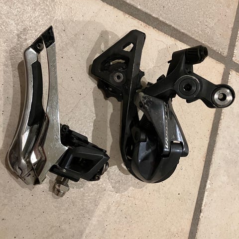 Fin og velfungerende ultegra forskifter. Kommer fra en Stevens Prestige cyclocross/gravel cykel og har udelukkende skiftet den ud for at kunne montere lidt tykkere dæk. 34.9 ø i klampe diameter. Har er par ridser her og der, men funktionalitet fejler ikke noget.