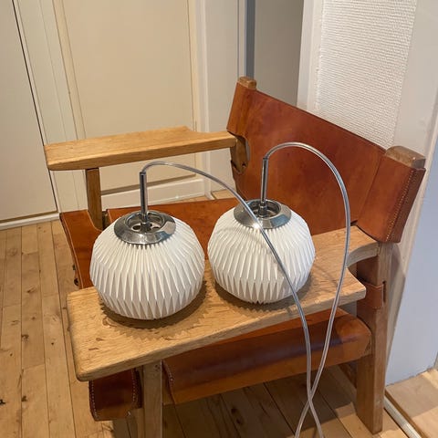 Begge lamper fremstår med tydelige brugsspor. Fra ikke-ryger hjem. Udgået model som sjældent ses.
