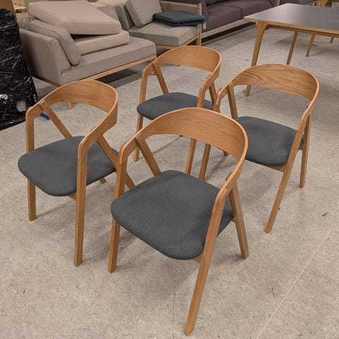 4 stk. FDB J138 foldestole i massiv olieret eg inkl. hynder.