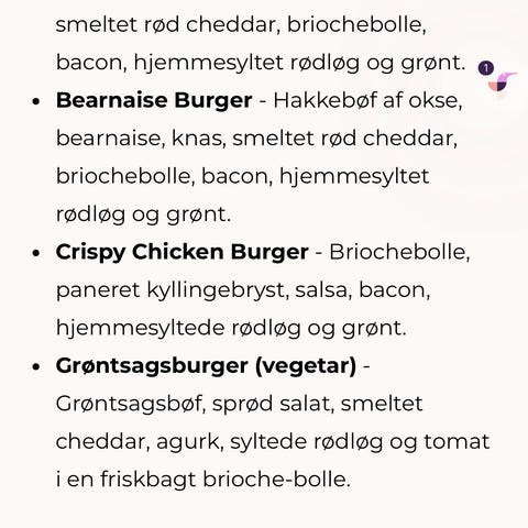Burgeren serveres med pommes frites. Det er ikke muligt at vælge en anden side.