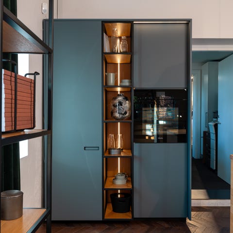 Køkken i kirsebærtræ af høj kvalitet i fremragende stand med SMEG-hvidevarer. SMEG indbygget ovn og kogeplade i sort. Ovnen har et klassisk design med rund ovnlåge og integreret ur. Kogepladen er en glaskeramisk model med fire kogezoner. Begge enheder er indbygget i træskabsløsning med naturlig træfinish. Velegnet til køkkeninstallation.Skal fjernes og afhentes af køber senest den 8. november