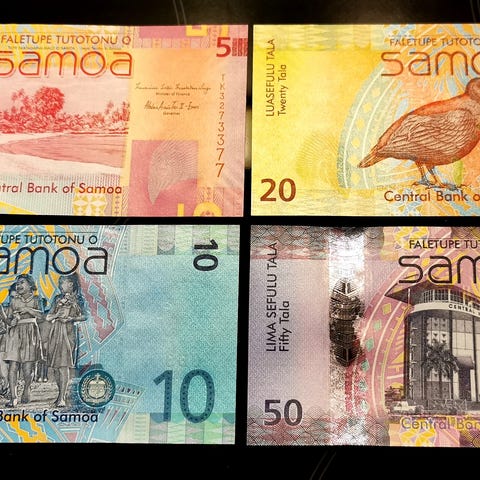 Seddel layout fra 1963, genskabt/gentrykt i (2020) af Samoas National Bank, for at hylde deres nationale kultur arv. På bagsiden er der afbildet Ø-idyl med strand og palmer. Forsiden er det Nationale Flag afbildet samt lokale nationale elementer. Extrem flot seddel, kræs for samlere og numismatikere.