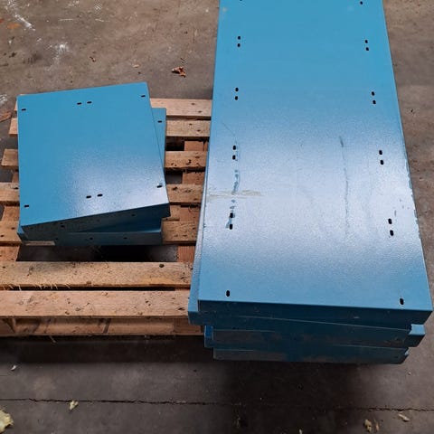 3 stk. 1174 x 300 x 66. 2 stk hulplader 885 x 30 x 14 - ikke pæne. 1 stk. Skinne.