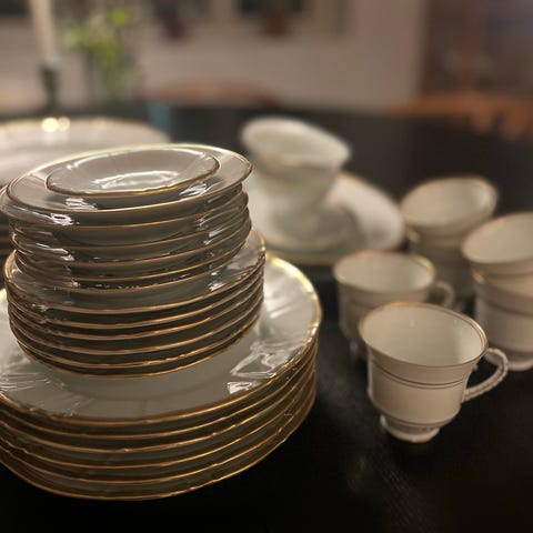 Bing & Grøndahl porcelænstel bestående af assorterede tallerkener og kopper i forskellige størrelser og med forskellige blomsterdekorationer. Sættet inkluderer dybe tallerkener, flade tallerkener, små tallerkener samt kopper med tilhørende underkopper. Materialet er porcelæn, og stellet er velegnet til brug ved måltider og som samlerobjekt.
