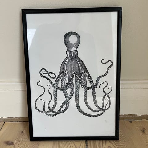 Plakat med lakridskonfekt-motiv. Mål: 30x40 cm.