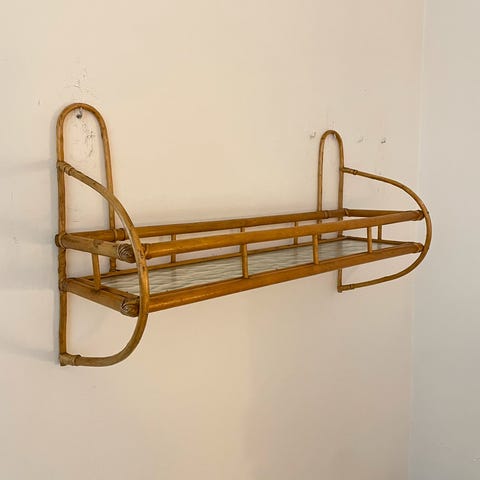 Fin vintage bambus hylde til væggen, med bølget glasplade...