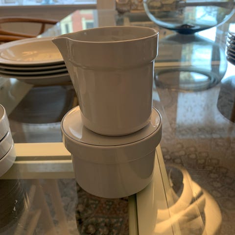 Blå Kant Royal Copenhagen kande med låg i porcelæn. Kanden har en rund form med hank og tud, samt et låg med greb. Produktet er velegnet til servering af kaffe og andre varme drikke.